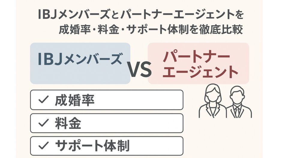 今回の記事では特にサービス内容が似ているパートナーエージェントと比較し、IBJメンバーズがおすすめできる理由に打ちて解説していきます。